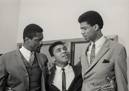 /Bill Russell on the left; Muhammad Ali in the middle; Kareem Abdul-Jabbar on the right.